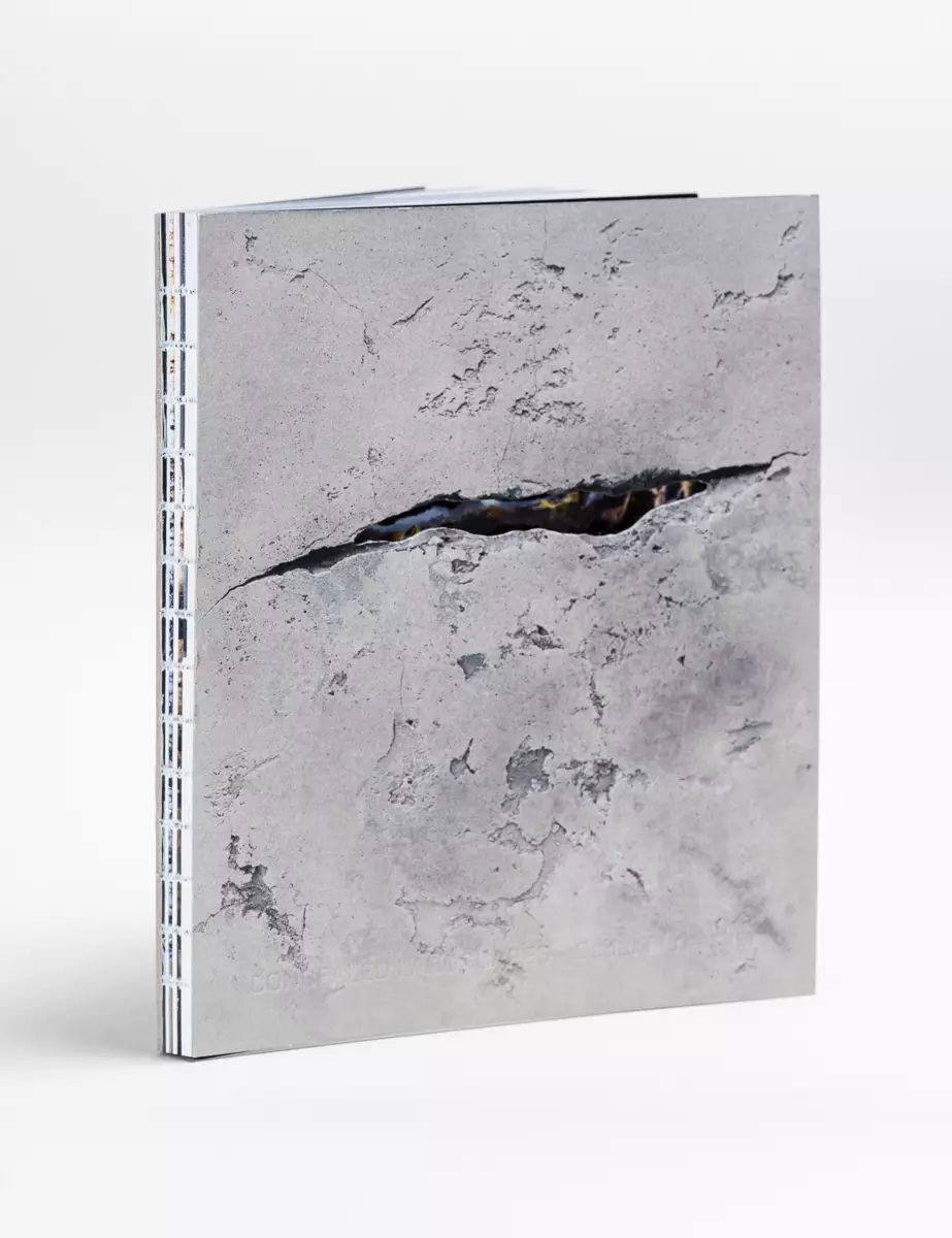 The minimalistic cover is inspired by one of the artist’s fissured concrete pieces and resonates powerfully with the architecture of the WeeGee building.