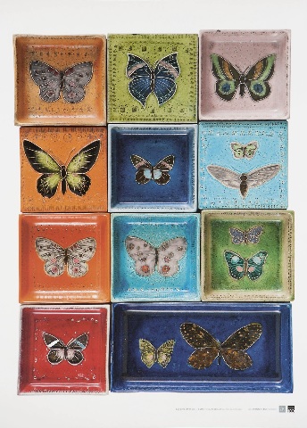 Rut Brykin juliste Perhoset (1957) kokoaa yhteen 11 perhoslaattaa.
